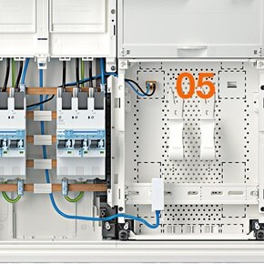 Häufig werden mehrere Verteilungen nebeneinander installiert. Mit dem Rangierkanal-Verbinder schaffen Sie eine einheitliche Optik der gesamten Zähleranlage.